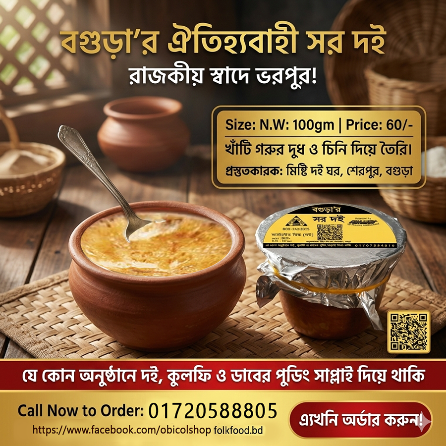 সরাসরি বগুড়া থেকে সংগৃহীত, ঘন দুধের মালাই আর সরের মিশেলে তৈরি