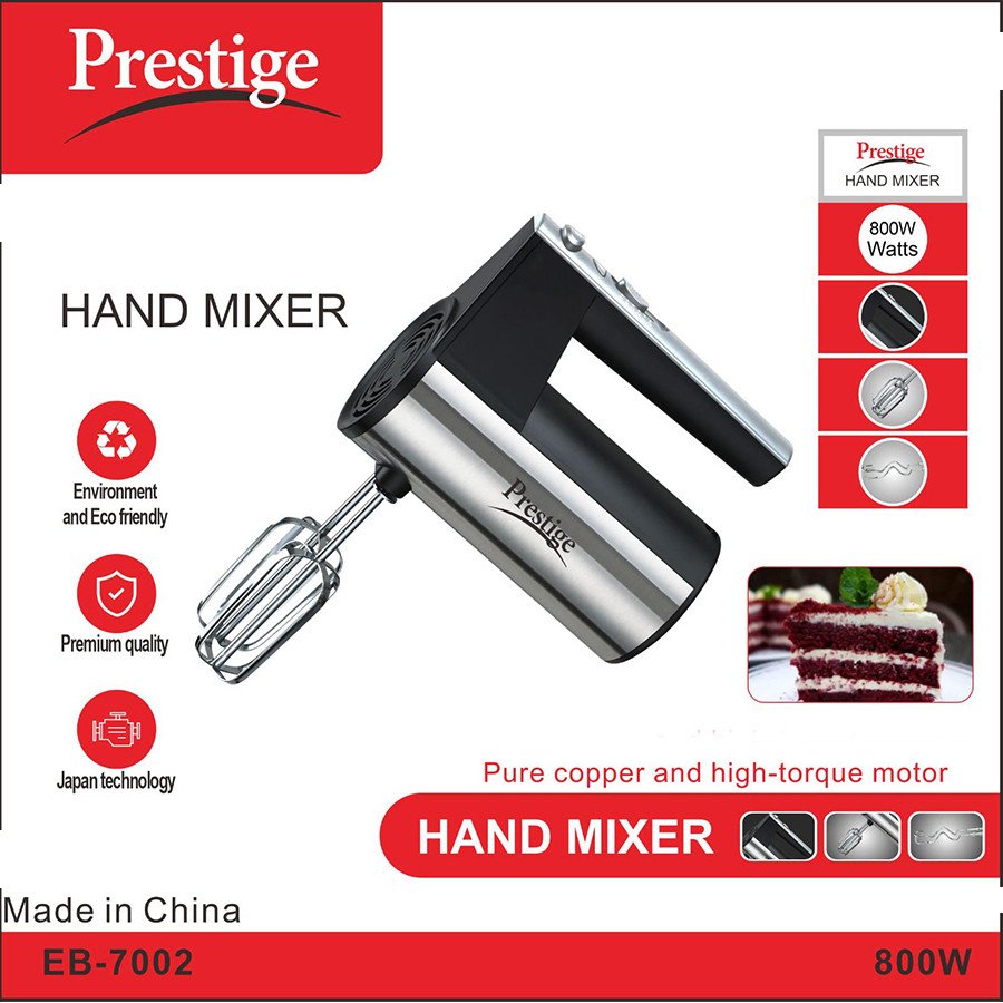 • Electric Egg Beater / Hand Blender / Dough Mixer • 800W power for efficient mixing and blending • Model: EB-7002, perfect for small kitchen appliances • Mixer Type: Hand Mixer, ideal for food preparation