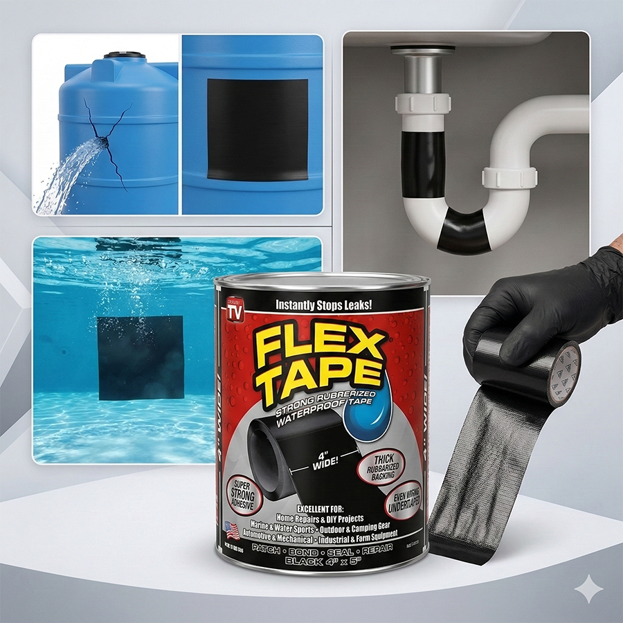 নিয়ে নিন Super Strong Waterproof Flex Tape, যা পানির নিচেও কাজ করে এবং যেকোনো বড় ছিদ্র বা ফাটল মুহূর্তেই সিল করে দেয়।