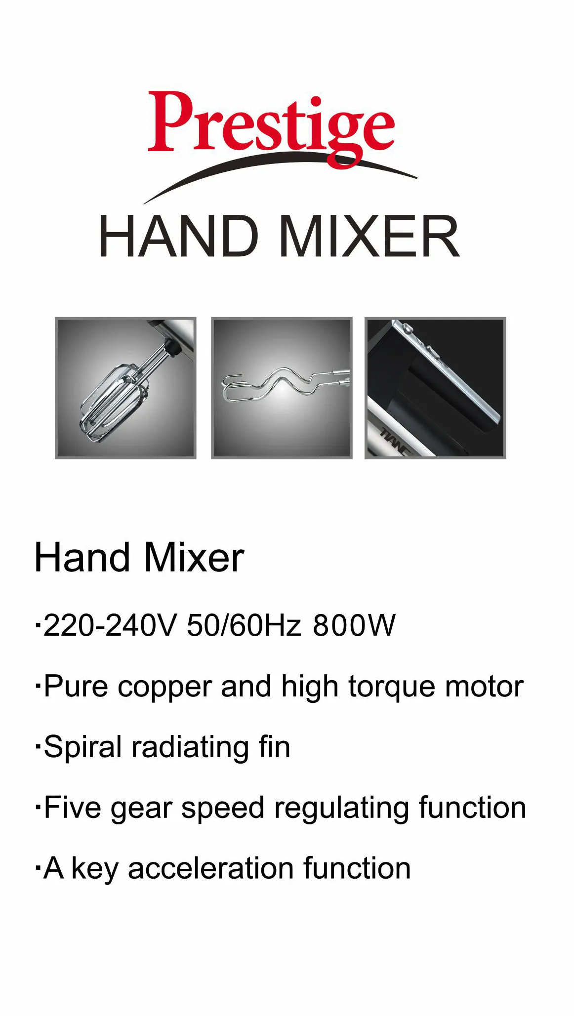 • Electric Egg Beater / Hand Blender / Dough Mixer • 800W power for efficient mixing and blending • Model: EB-7002, perfect for small kitchen appliances • Mixer Type: Hand Mixer, ideal for food preparation